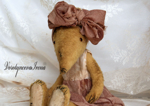 Лиса Мара сшита из вискозы, наполнена опилками, глазки стеклянные. Одежда сшита из винтажных тканей и кружев (снимается, но с трудом). Лиса сама не стоит, только с опорой. Не тяжелая. Важно: шплинты внутри игрушки закреплены слабо, чтобы создавалось впечатление старой и "поигранной"... В единственном экземпляре!